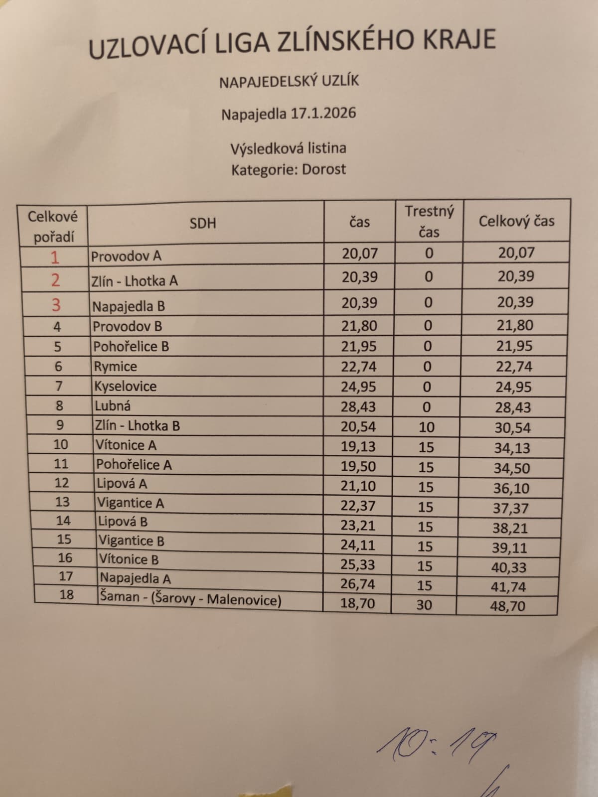 💪 Starší žáci se v silné konkurenci umístili na 24. místě. I přesto si zaslouží velké poděkování za snahu, nasazení a vzornou reprezentaci našeho sboru 👨🚒👩🚒.