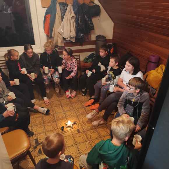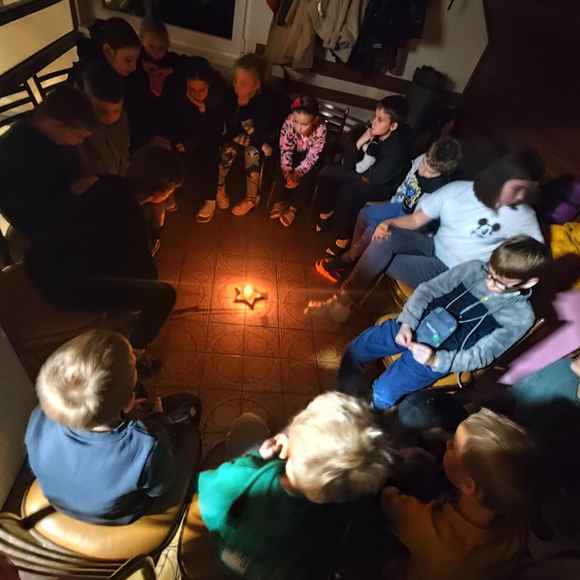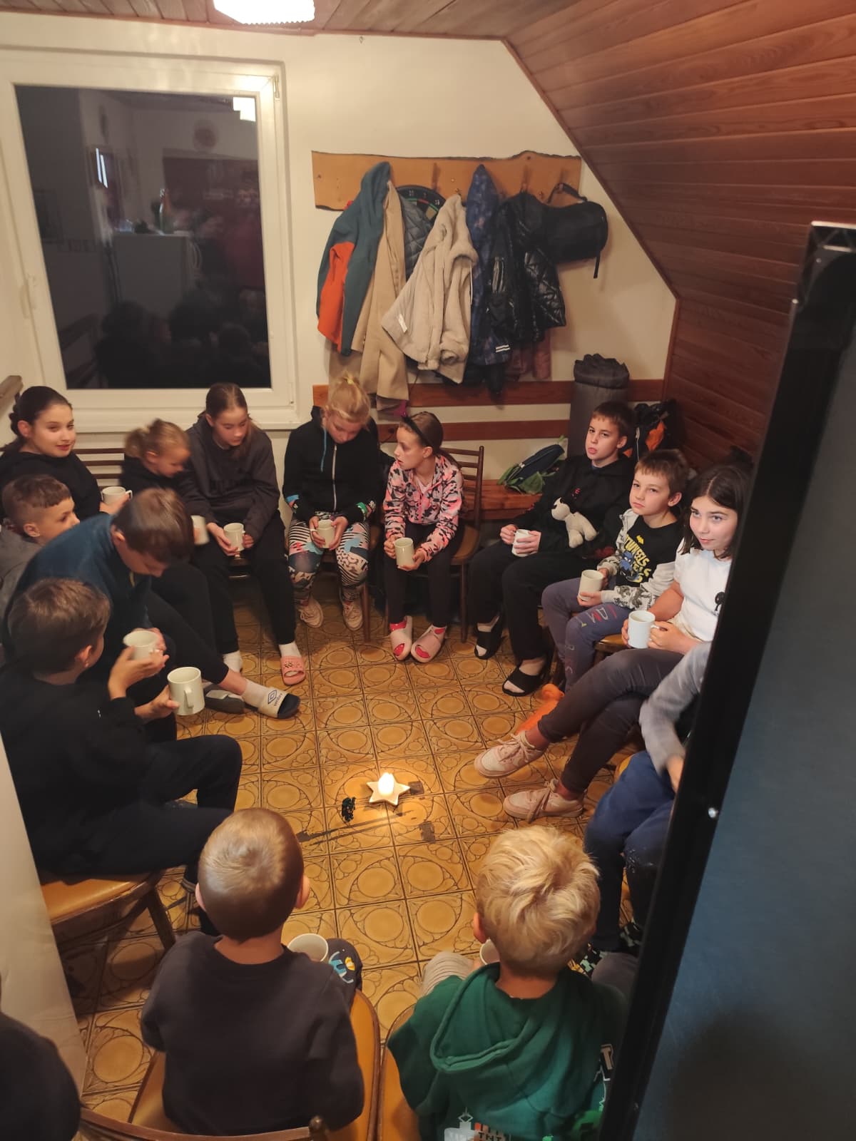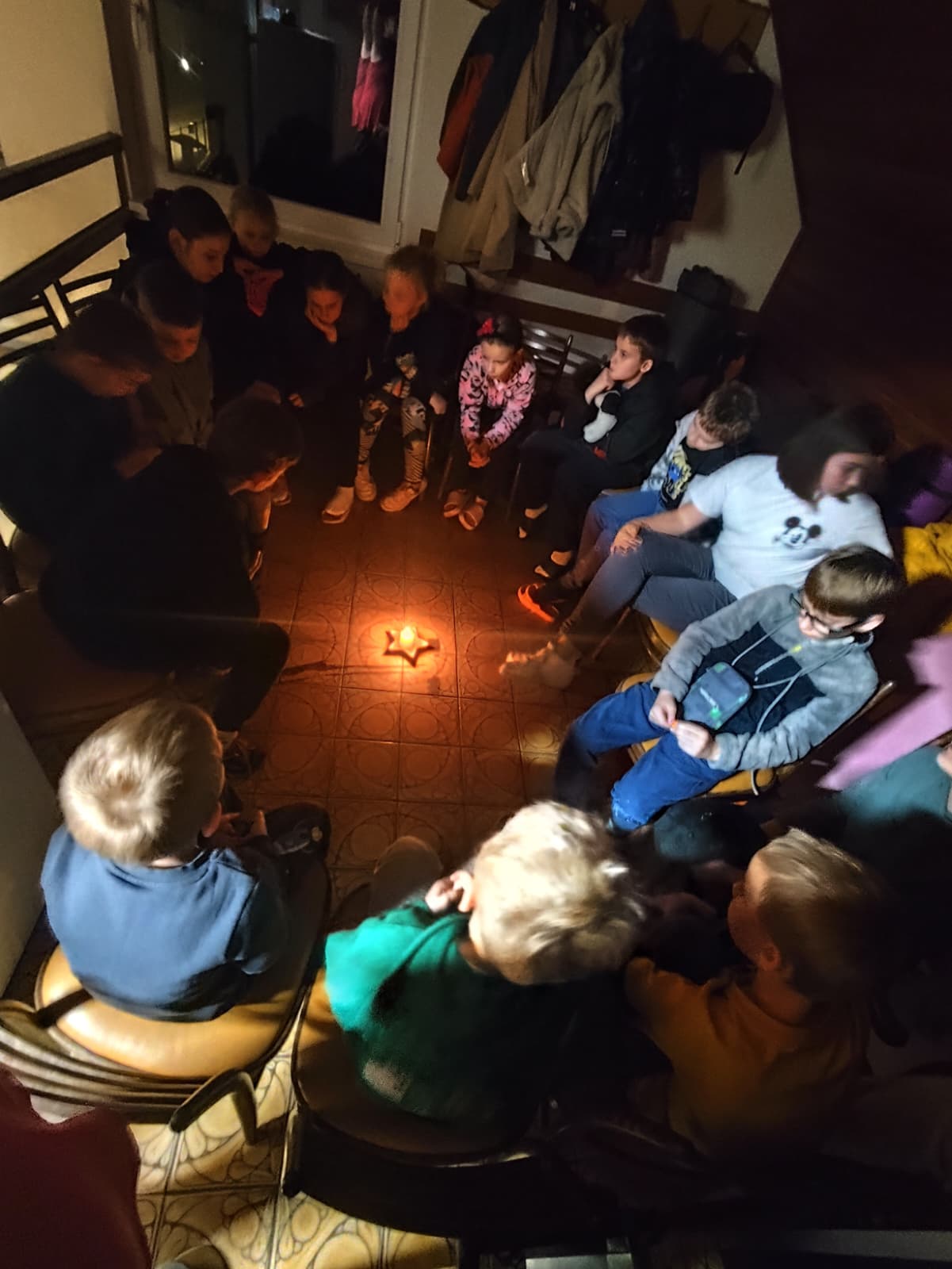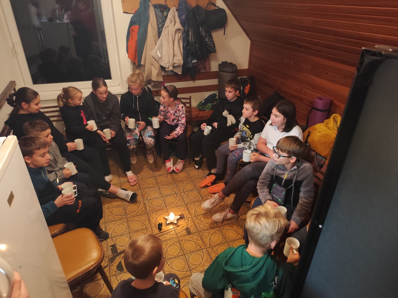 Následovaly zábavné aktivity 🎉, při kterých se děti nejen bavily, ale také utužovaly přátelství. Hrály se hry 🎲, soutěžilo se 🦸 a nechyběl ani tanec 💃 pod blikajícími světýlky 💡. Když se večer přehoupl do tmy 🌙, nastal čas na to nejdůležitější – vyprávění strašidelných příběhů 🤫. V šeru hasičárny se ozývaly tajemné hlasy, šustění a smích 😂, když si děti předávaly příběhy o strašidlech ze Starého Zubří. ⛰️