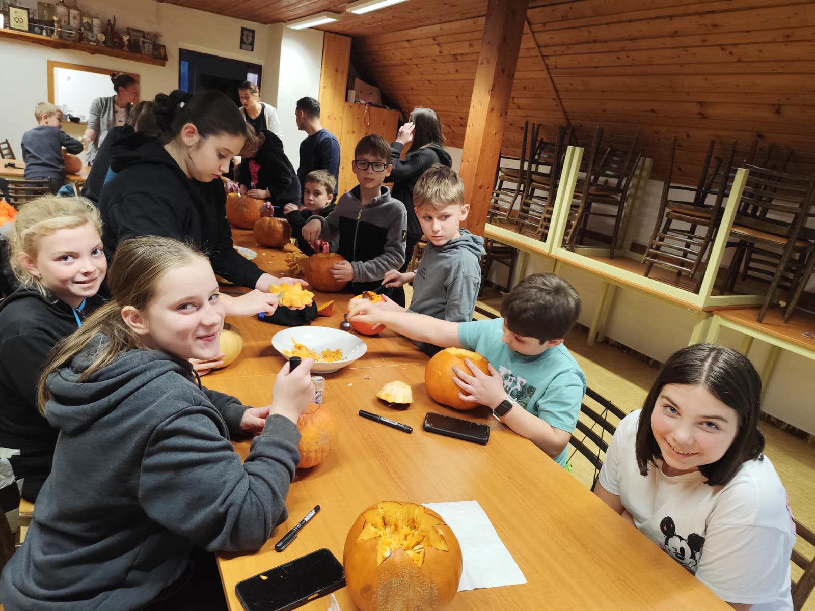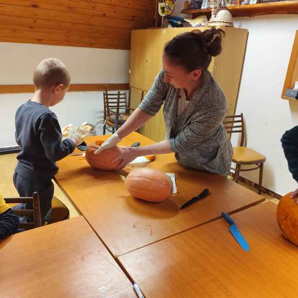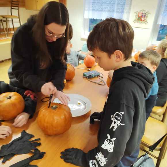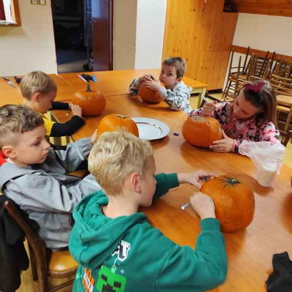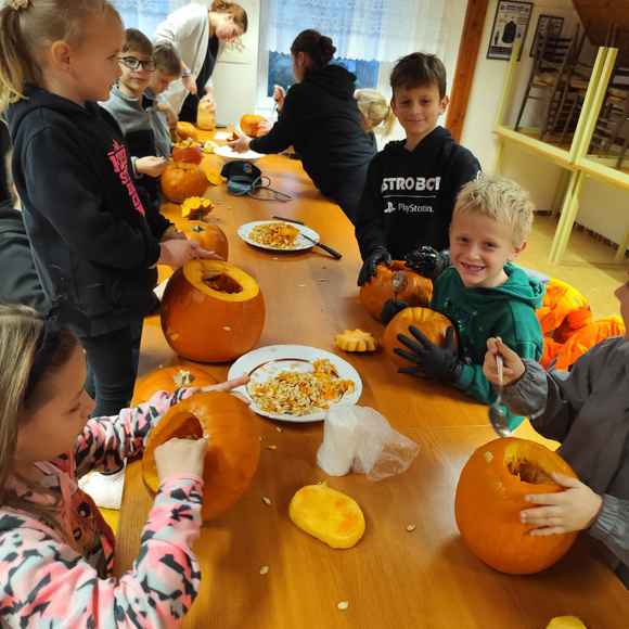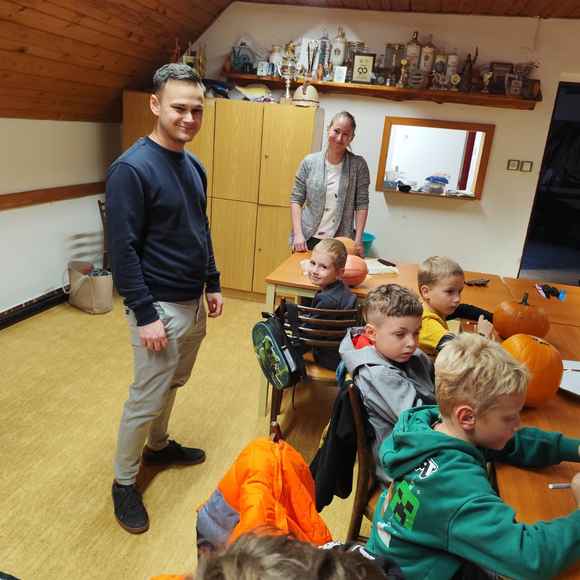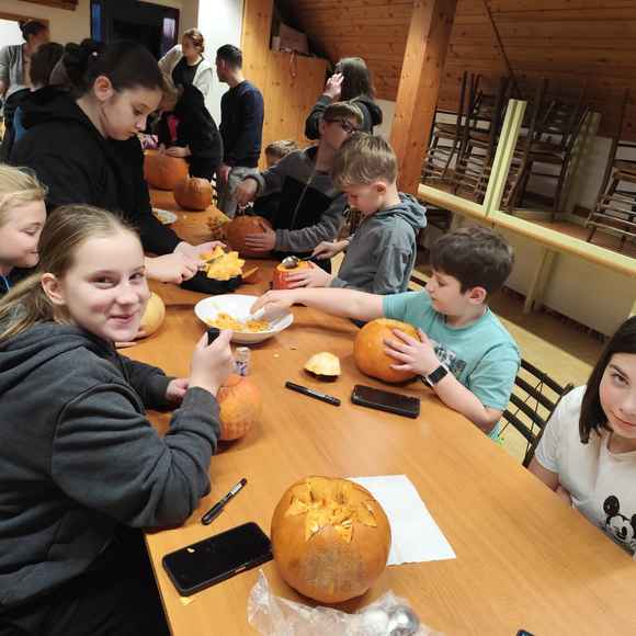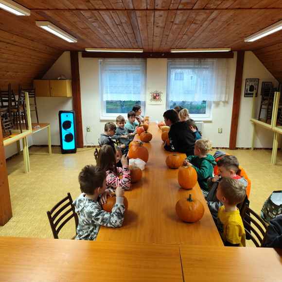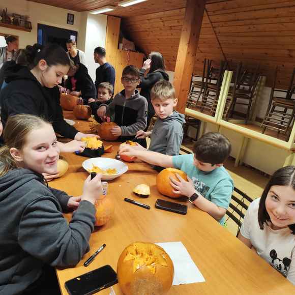 Večer plný dýní, strašidel a dětského smíchu 🥳 ožil na stanici SDH Staré Zubří, kde se naši mladí hasiči – svišti 🧑🚒 – sešli, aby společně oslavili Halloween. Hasičárna se proměnila v dýňové království 👑, když se děti pustily do kreativního vykrajování dýní. Každá z nich dostala jedinečný výraz – od roztomilých obličejů 🥰 až po děsivé grimasy 👹.