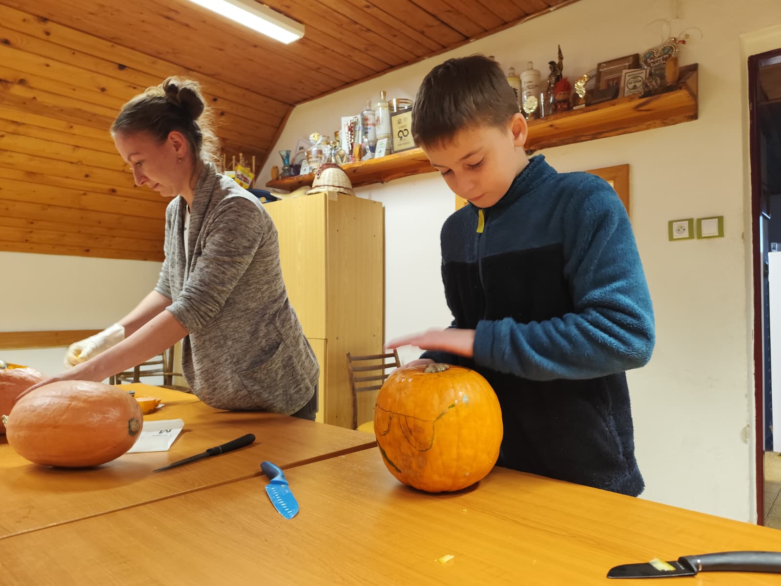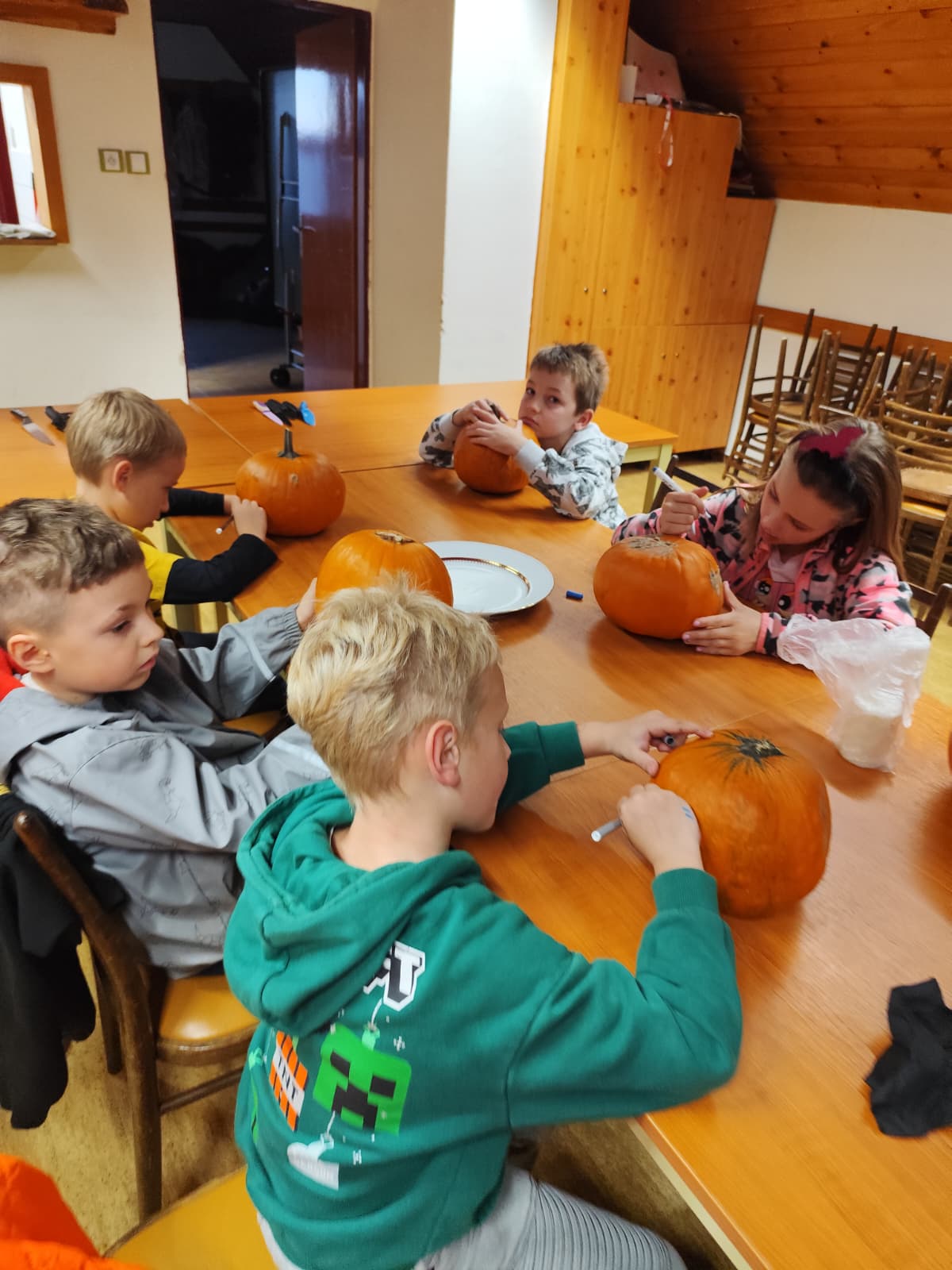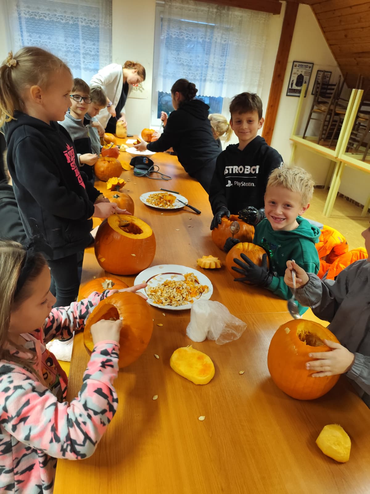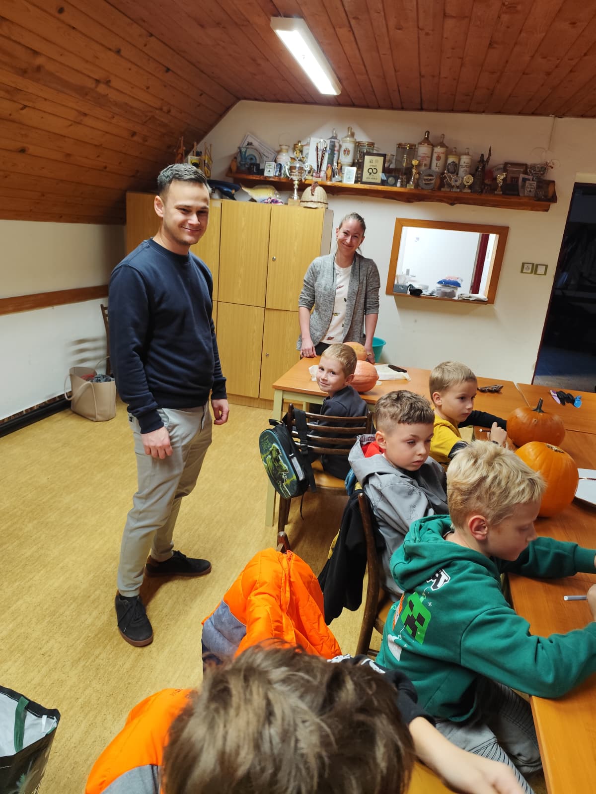 Večer plný dýní, strašidel a dětského smíchu 🥳 ožil na stanici SDH Staré Zubří, kde se naši mladí hasiči – svišti 🧑🚒 – sešli, aby společně oslavili Halloween. Hasičárna se proměnila v dýňové království 👑, když se děti pustily do kreativního vykrajování dýní. Každá z nich dostala jedinečný výraz – od roztomilých obličejů 🥰 až po děsivé grimasy 👹.