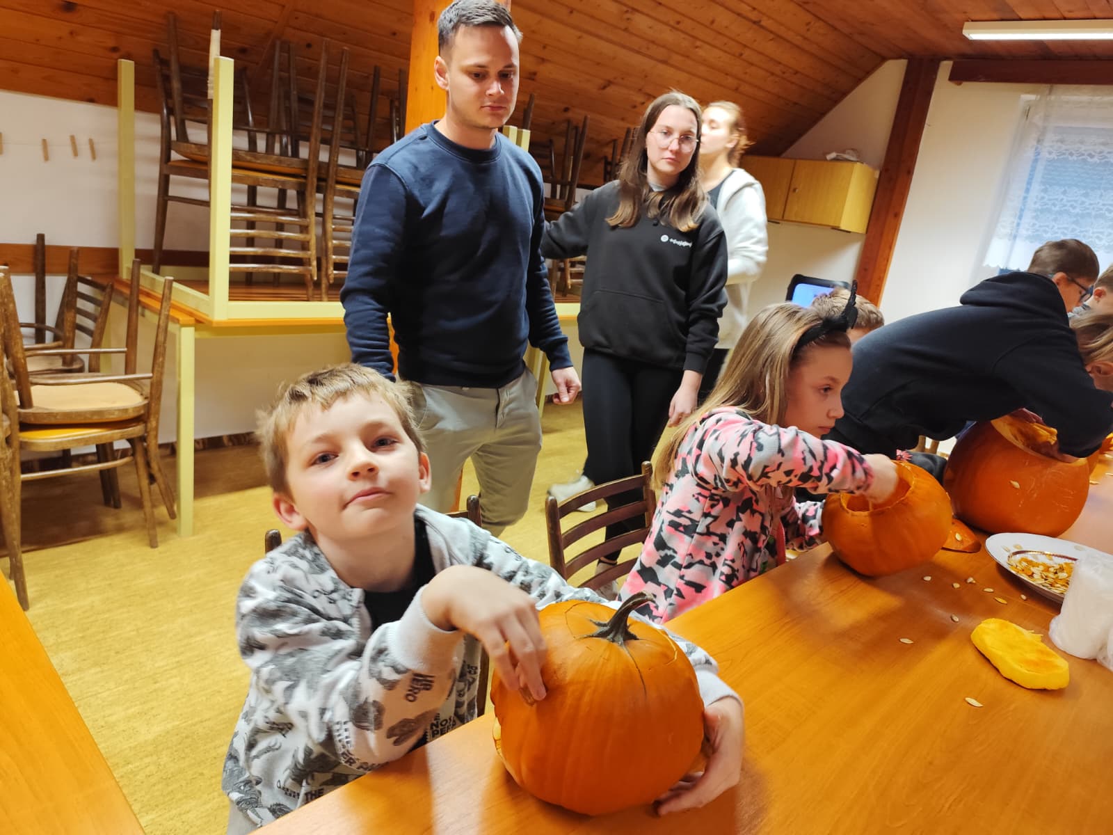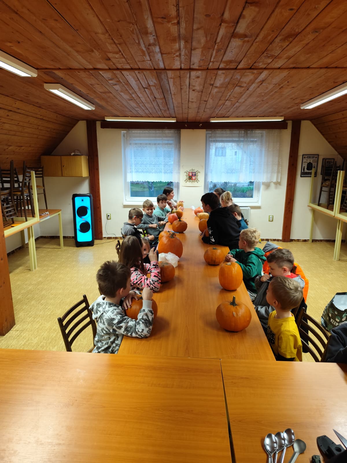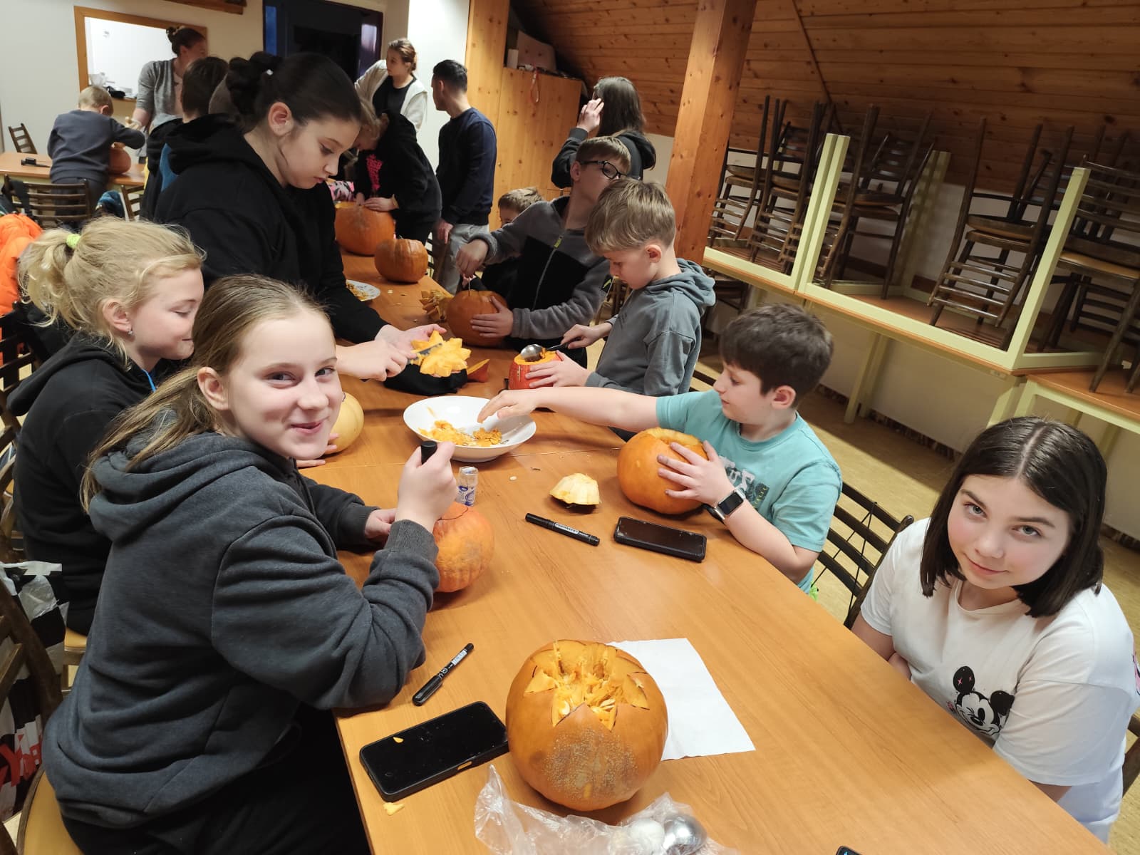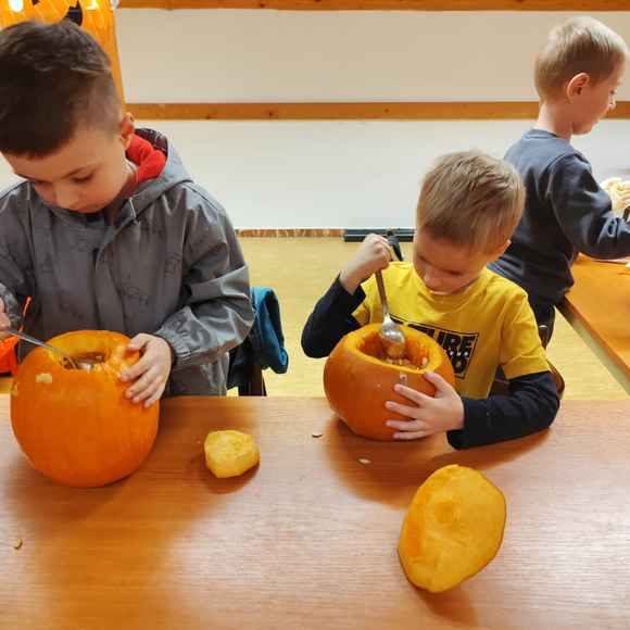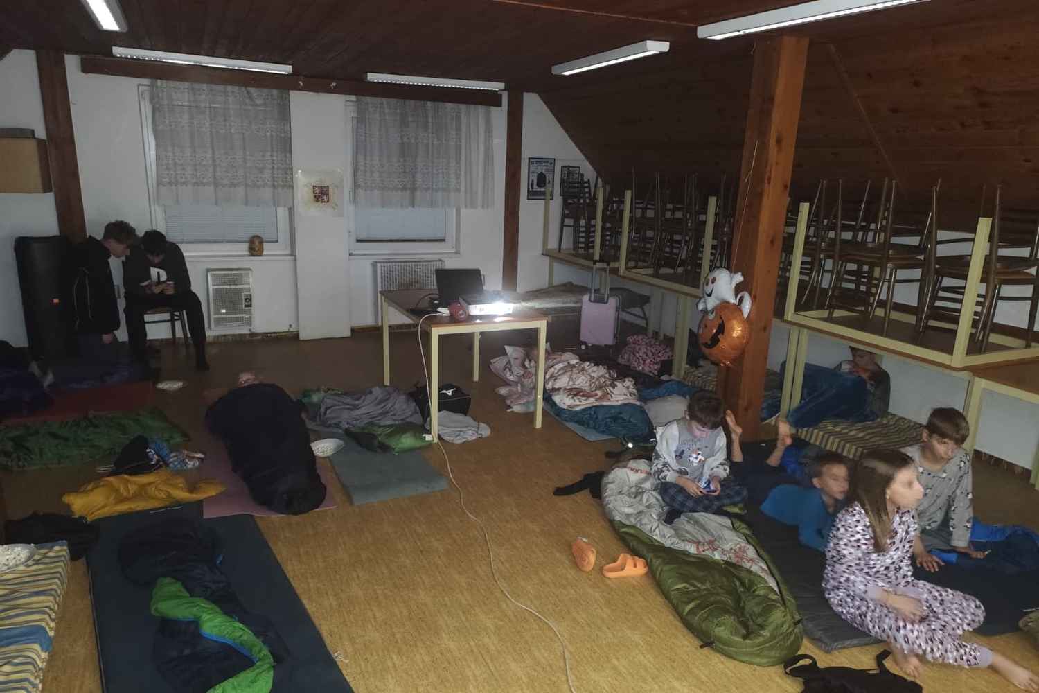 Po napínavém vyprávění se svišti zachumlali do spacáků 😴 a usnuli pod dohledem svých vedoucích. Ráno je čekala společná snídaně 🥣, po které byli plní zážitků a dýňového nadšení 🥰 opět předáni svým rodičům.