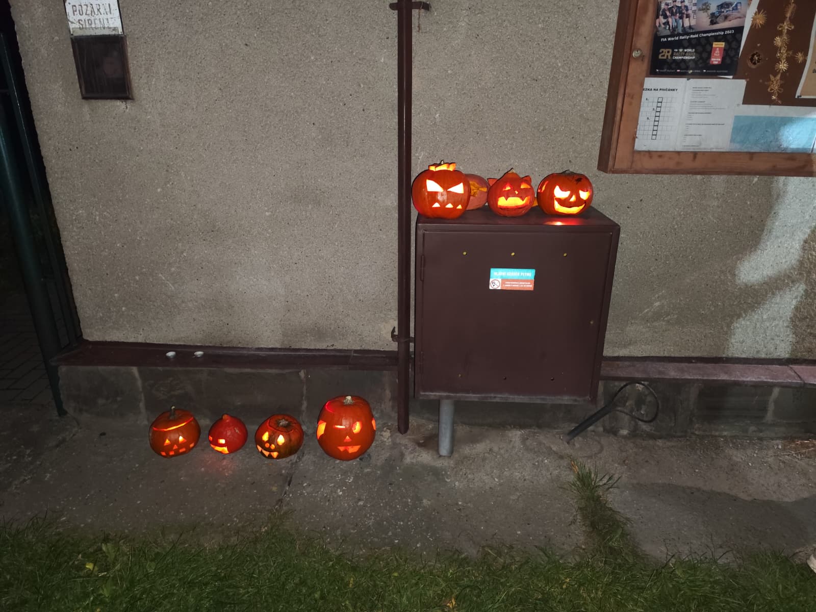 Po dokončení výtvarné části 🎨 byly dýně vystaveny před hasičárnou, kde vytvořily působivou podzimní dekoraci 🍁, která přilákala pozornost kolemjdoucích. Ale to byl teprve začátek! ✨